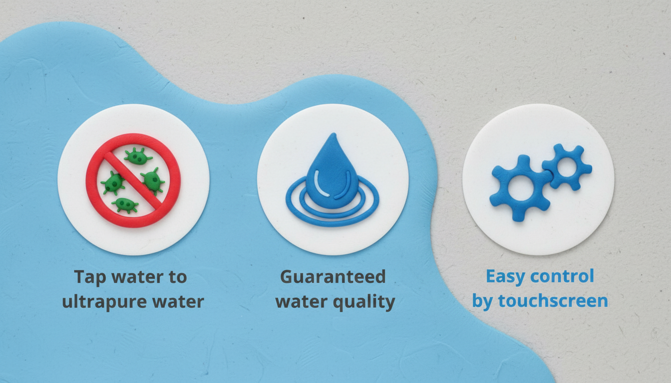 aquapuri 541/551 series eliminates the need for a Type II/Type Ⅲ unit or a storage tank. It purifies water in a single, integrated step—minimizing system footprint while maximizing purity.